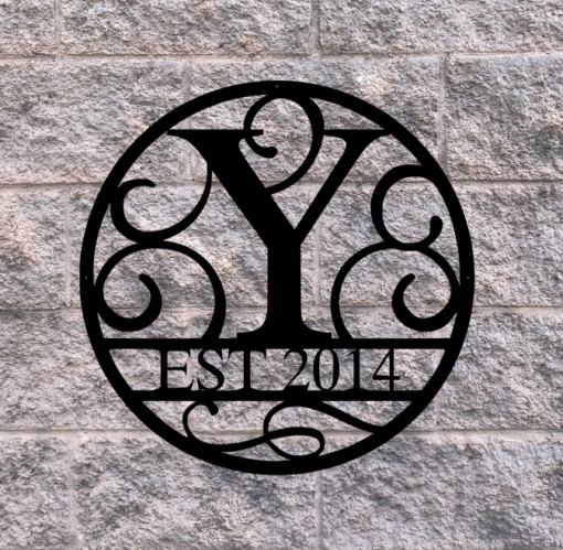 Beautifully crafted customizable Single Letter Initial metal monogram. Unique Single Letter Initial Swirled design. Personalization can be Single letter and the established year. This personalized sign is made with high quality stainless steel or carbon steel using our state of the art fiber laser. We use 16 gauge material. Stainless Steel has polished finish, but can be powder coated flat black. Carbon Steel is powder coated flat black. Available in 4 sizes – 18″ H, 24″ H, 30″ H or 36″ H. Custom sizes available. Both materials are weatherproof making them perfect for Indoor & Outdoor!