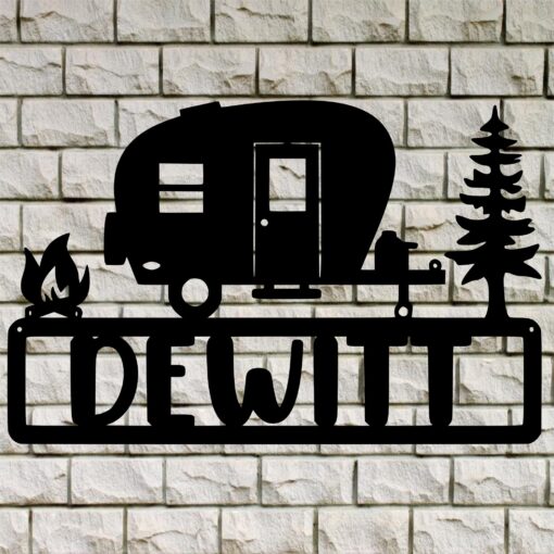 Everyone loves to decorate and glam up their campsite.ย Sea Biscuit Metal Designs has the perfect solution!ย Your campsite will be the talk of the campground with our beautifully crafted personalized sign designed and modeled after your camper. Made with carbon steel using our state of the art fiber laser. Measures 18″ W x 11″ H.ย 6 number limit or 12 Letter limit. Stakes are available so it is very easy to put into the ground or flowerpot.ย Powder coated flat black.ย Weatherproof and rustproof.
